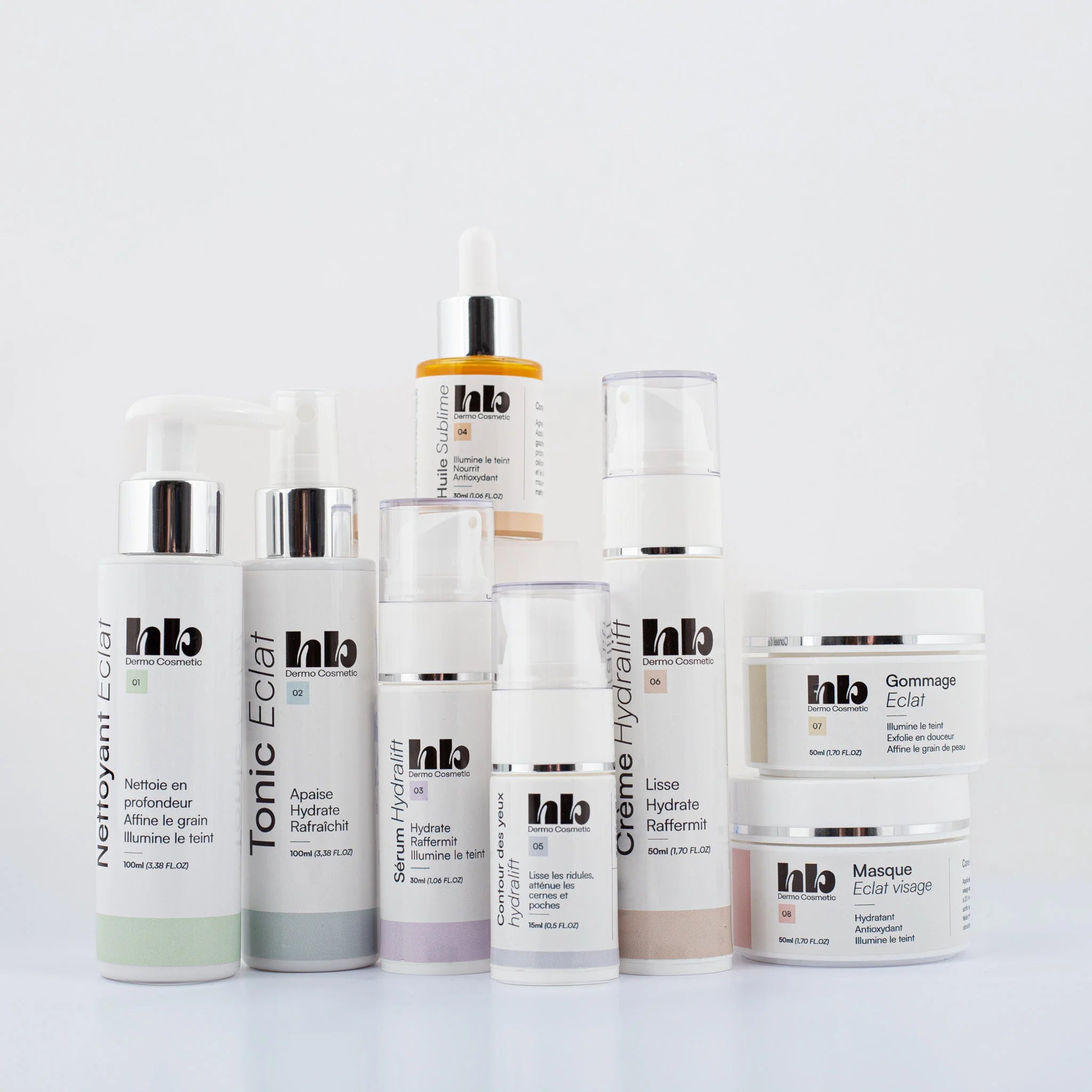 Une gamme de 8 produits pour une routine beauté quotidienne by HB Dermo Cosmetic.
